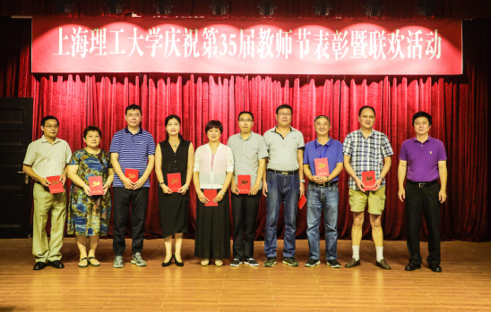 9月10日下午,学校在教工活动中心举行庆祝第35个教师节表彰暨联欢会。校党委书记吴坚勇,校长丁晓东,中国工程院院士庄松林,校党委副书记、工会主席孙跃东,副校长、校妇工委主任蔡永莲出席会议。各学院、机关党委书记、工会主席、上海市劳模、上海市三八红旗手、三十年教龄教师、青年教师及退休教师代表等100余名教师与会。会议由校工会常务副主席朱莉主持。 会议伊始,孙跃东宣布上海理工大学教职工文体福利活动平台上线。 吴坚勇为庄松林院士领衔的上海市劳模创新工作室揭牌,孙跃东、蔡永莲分别为荣获上海市教育先锋号的管理学院学生工作办公室、控制工程研究所颁奖。这些荣誉,是我校近年来深化内涵改革、各项事业蓬勃发展的综合体现。