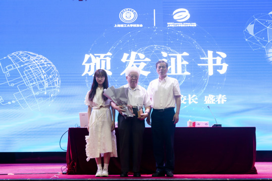周立伟院士、庄松林院士、顾敏院士合影留念 供稿:校友工作联络处、上理工科技园 |