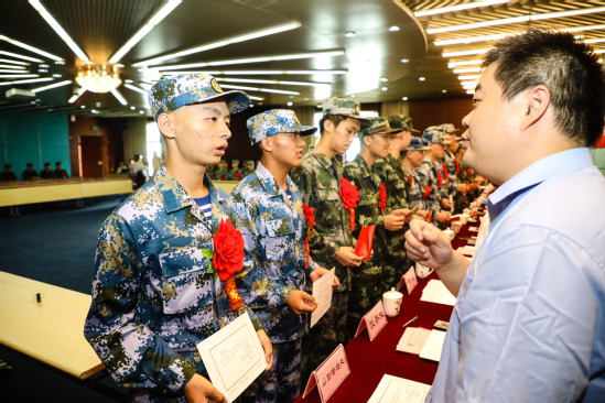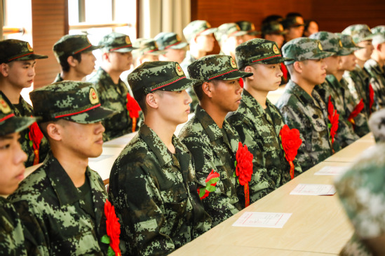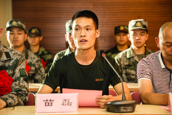 新兵薛洋洋代表全体入伍学生发言