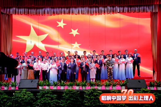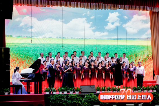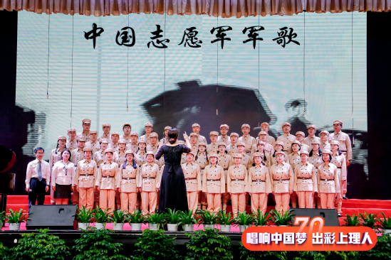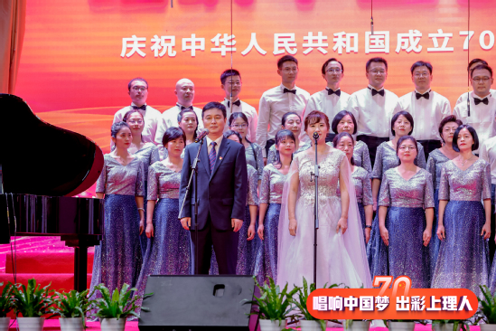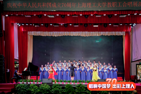 9月27日,庆祝中华人民共和国成立70周年上海理工大学教职工合唱展演活动正式拉开帷幕,此次活动由中共上海理工大学委员会主办,中国教育工会上海理工大学委员会、共青团上海理工大学委员会承办,来自学校各机关部门、各学院16支代表队共同唱响献给祖国母亲的赞歌。学校领导丁晓东、刘道平、盛春、蔡永莲、刘平、赵明、张华出席活动并分别加入各代表队一起唱响爱国歌曲。 校长丁晓东在致辞中谈到,今天我们隆重举行庆祝中华人民共和国成立70周年教职工合唱展演,共同用美好的歌声,回顾中国共产党领导中国人民走过的波澜壮阔而又艰辛曲折的奋斗历程,讴歌祖国发展建设改革创新取得的伟大成就,抒发上海理工大学全体师生不忘初心、牢记使命的爱国情怀。我们也将以此为契机,进一步激发新时代与祖国共奋进的爱国情、报国志。不断增强“四个意识”,坚定“四个自信”,做到“两个维护”,用嘹亮的歌声,抒发上理人新时代的豪情壮志;用豪迈的激情展示担当作为、攻坚克难的决心和毅力;用美妙的旋律憧憬美好的未来。 展演分为“忆峥嵘岁月、走进新时代、光荣与梦想”三个篇章,活动在能源动力工程学院合唱团演唱的《旗正飘飘》中拉开了序幕。《长征组歌·四渡赤水出奇兵》、《唱支山歌给党听》、《祖国颂》、《今天是你的生日——中国》、《我和我的祖国》等一首首脍炙人口的歌曲响彻礼堂各个角落,每个代表队精彩的表演博得观众阵阵热烈掌声。大家怀着对祖国的挚爱,唱响美丽梦想,恢弘大气,深情豪迈,高潮迭起。 经过激烈的角逐,最终1个一等奖、2个二等奖、3个三等奖,9个优秀组织奖,以及3个单项奖揭晓。环建学院、机械学院等9个单位获优秀组织奖;外语学院获“最佳台风奖”,管理学院获“最具潜力奖”;沪江学院、基础学院、中英学院、中德学院联合团队获“最佳表演奖”;版艺学院,材料学院与机关三工会,沪江学院、基础学院、中英学院、中德学院联合团队分获三等奖;机关一工会及管理学院分获二等奖;机关二工会斩获一等奖。校领导为获奖单位颁奖。 “五星红旗迎风飘扬, 胜利歌声多么响亮;歌唱我们亲爱的祖国, 从今走向繁荣富强”。最后,伴随着优美的旋律,全场的老师们在上海理工大学沪江之声合唱团的带领下,深情高歌《歌唱祖国》,上海理工大学教职工合唱展演在豪迈激昂的歌声中圆满落下帷幕。