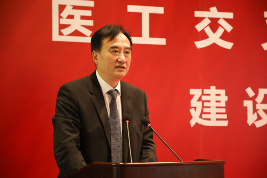 上海市卫生健康委员会党组书记、副主任黄红讲话 我校与交大医学院的此次合作并非“突发奇想”,事实上,两校在合作之前就已经在医工交叉领域开启了前沿探索:交大医学院牵头组建的国家标准化代谢性疾病管理中心(MMC)在糖尿病筛查等方面做出了卓有成效的贡献;研发的智能医护服务机器人项目,打造多模态混合智能交互医护服务集成示范区,解决医护人员短缺、照护不全面、人性化服务缺乏等一系列医改核心问题,在全国多个扶贫省份医院以及医联体中投入使用。同样,上理工研发的“裸眼3D临床手术显示器”,让医生不用戴着厚重的3D眼镜也能精准手术;研发出的全球首款可定位的“胶囊内窥镜”,让近7万名患者免除做胃镜的痛苦……这诸多成果填补了国内乃至国际研究的空白。然而,随着各自研究的深入,双方都逐渐意识到,靠着医学专家“单打独斗”、工科教师“单枪匹马”的力量是不够的,只有“跨界”携手、深化合作,才能将医工交叉领域推至发展的快车道。 早年,上理工庄松林院士和交大医学院附属瑞金医院宁光院士联手推动成立了“智慧医疗联合实验室”。明确医工交叉发展战略后,上理工先后启动了与上海九院、仁济、新华等各大医院的合作。在此基础上,由交大医学院陈国强院士亲自推动,全面开启了上海交通大学医学院及其附属医院和上海理工大学的合作共建。