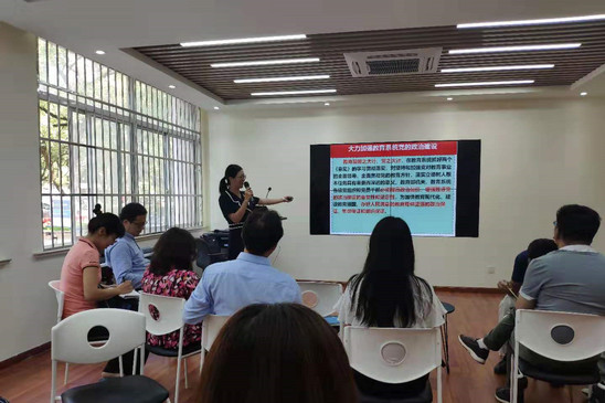 9月27日中午11:30,外语学院举办“党支部政治建设与教育事业发展关系”专题研讨,上海市委党校马克思主义学院郑少东老师为研讨做主题导学并主持研讨。学院党委委员、教工党支部委员、担任学生党支部书记的专业教师和全体辅导员参加研讨,研讨会在外语学院党建服务站举行。 郑少东副教授作了题为《党支部政治建设与教育事业发展关系》的讲座。她结合国际国内环境讲解了党的政治建设的重要性与迫切性,从深入推进反腐败斗争的必然要求、坚持和加强党的全面领导的必然要求、全面从严治党向纵深发展的内在需要等方面进行讲解。她分析了高校意识形态工作面对的复杂形势,比如全球化所引发的制度价值冲突、市场经济深度推进所引发的一系列政治和文化问题、信息网络技术迅猛发展所带来的思想价值挑战等等。她还结合高校教育中存在的现实问题,讲解了在切实加强教育系统中党支部政治建设的主要方法,包括把党的政治建设摆在首位、发展积极健康的党内政治文化、把思想政治工作贯穿高校教育教学全过程,在学生中开展深入、持久、生动的爱国主义教育,让爱国主义精神牢牢扎根在学生的思想意识中。 院长刘芹在研讨中指出,教工党支部政治建设与教育教学紧密相关,支部教师要贯彻落实党的教育方针、培养优秀人才,在实际工作中解决学生的功利主义、个人主义,培养根正苗红的党的事业的接班人等问题,就是党支部政治建设的具体内容。 党委书记程旺在总结中说道,郑少东老师把政治建设这一深刻主题讲得非常清楚,理论清晰、案例丰富、联系实际,明确了中央、各级党委、基层党支部政治建设的要求和内容,政治建设的要求并不遥远和空泛,在学院党委和党支部都是明确具体的。按照 “不忘初心、牢记使命”主题教育要求,学院党委和支部在今后的工作中,都要进一步发挥主体作用,相互配合、相互监督、相互促进,进一步加强政治建设,有效发挥学院和支部基层党组织作用,贯彻落实党的教育方针,推进学院事业发展。 参加研讨会的教工党员在研讨中纷纷发言交流,讨论党支部政治建设的原则与具体内容,大家一致对郑少东老师的导学和研讨指导表示感谢。本次研讨是“外语学院教工党支部组织力提升”专题研讨班第二个专题研讨,研讨班由上海理工大学党校与外语学院党委联合举办。