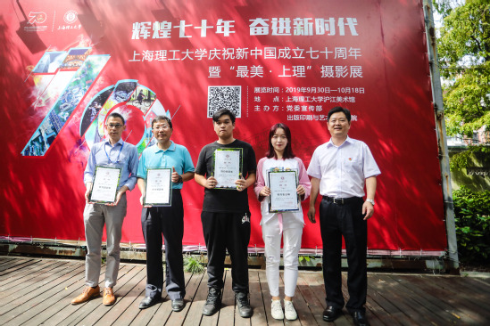 为庆祝中华人民共和国成立70周年,用影像全方位、多角度展现新中国成立以来特别是改革开放以来,伟大祖国和上海理工大学取得的巨大成就和精彩变化,9月30日,由党委宣传部和出版印刷与艺术设计学院共同举办的上海理工大学“辉煌七十年,奋进新时代”暨首届“最美·上理”摄影展在学校沪江美术馆拉开帷幕。校党委书记吴坚勇,校党委副书记孙跃东,部分学院、职能部处负责人,入展获奖师生,特约摄影师及部分学院师生代表参加了摄影展开幕式。校党委常委、宣传部长叶磊主持开幕式。 开幕式上,首先为入展获奖师生进行了颁奖。随后,校党委副书记孙跃东为首批特约摄影师颁发了聘书。据了解,为了更好地展示上理形象,用影像定格上理的美好时刻,党委宣传部从学校的教师、学生、离退休教职工中遴选了一批特约摄影师并签约,探索与校内师生签约供图模式,旨在提升学校的视觉形象,首批特约摄影师共有6名上理师生。最后,校党委书记吴坚勇和获得“辉煌七十年,奋进新时代”摄影大赛一等奖的栾博翔同学共同为摄影展开展揭幕。开幕式后,与会嘉宾共同参观了摄影展。 本次摄影展集中展示了“辉煌七十年,奋进新时代”摄影大赛和首届“最美·上理”摄影大赛的获奖作品,共收录了全校师生47幅摄影作品。展览时间为9月30日-10月18日。