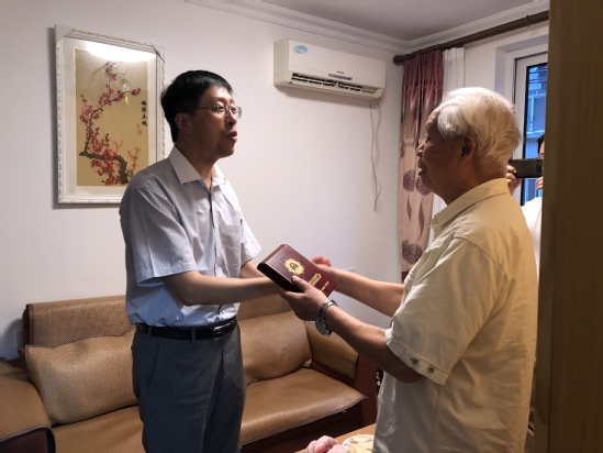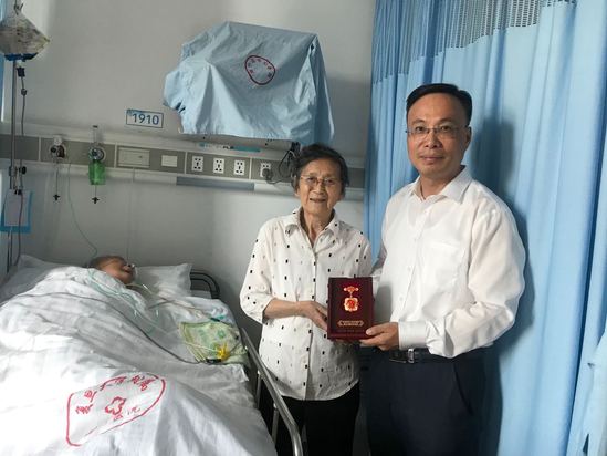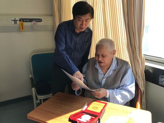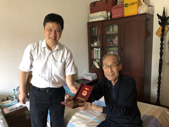 近日,校党委书记吴坚勇,校党委副书记、校长丁晓东,校党委副书记顾春华、孙跃东,副校长陈斌,校党委常委、组织部部长孙红,以及相关学院、部门(含版专)领导等带队,在学校发放纪念章工作小组成员的陪同下,于9月16日至24日分别走访看望我校(含版专)离休干部,为老干部佩戴由中共中央、国务院、中央军委颁发的“庆祝中华人民共和国成立70周年纪念章”,向大家致以崇高敬意和亲切问候,并送上节日慰问。 为了认真贯彻中共中央组织部、中共上海市委组织部和中共上海市委老干部局关于庆祝中华人民共和国成立70周年活动的有关通知精神,根据市教卫党委系统老干部处关于发放“庆祝中华人民共和国成立70周年纪念章”工作要求,校领导高度重视,在校党委常委会上专题研究,成立了“上海理工大学发放庆祝中华人民共和国成立70周年纪念章”工作小组,认真部署国庆前夕走访慰问老干部及纪念章发放工作。 全校(含版专)共有27位离休干部获得了纪念章,包括定居异地的离休干部和异地安置离休干部遗属。抚摸着金光闪闪的纪念章、听着校领导宣读的贺信,老干部们百感交集、心潮澎湃,纷纷表示,新中国成立70年来,国家取得了举世瞩目的成就,学校也发生了翻天覆地的变化,取得了飞速发展。老同志们感谢党中央和祖国给予的荣誉,会珍惜光荣历史,永葆政治本色,不忘初心、牢记使命,一如既往地关心和支持学校的建设和发展。