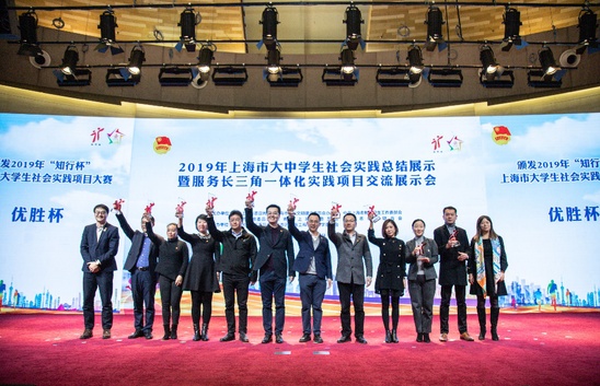 12月1日,在2019年上海市大中学生社会实践总结表彰大会上,我校荣获2019年“知行杯”上海市大学生社会实践大赛“优胜杯”。 在今年的“知行杯”大学生社会实践大赛中,我校共获得大学生社会实践项目大赛一等奖1项、二等奖2项、三等奖4项,长三角生态绿色一体化发展示范区大学生社会实践项目专项赛“十大优秀项目”1项及“知行杯—青春社区”上海高校共青团“往社区走”社会实践项目专项赛“十大优秀项目”1项。其中3个项目入选“共青团与人大代表、政协委员面对面”暨上海市大学生社会实践优秀成果推荐会。 在仪式开始前,我校获得一等奖的团队参与了现场交流展示,团队成员们向团市委、青浦区领导以及到场师生们进行了详细的项目介绍和经验交流。
