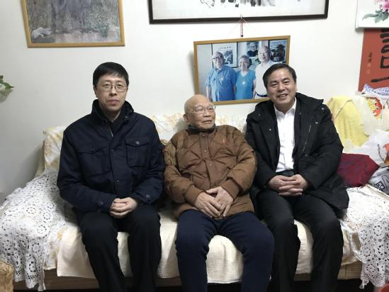 1月13日下午,校党委书记吴坚勇,党委副书记、副校长盛春在校友工作联络处相关人员的陪同下看望了杰出校友、上海沪江大学校友会会长张耀忠和杰出校友、中国科学院院士戴立信,为老校友们送去了节日祝福与问候。 杰出校友、上海沪江大学校友会会长、沪江大学46届化学系张耀忠校友虽然已是95岁高龄,但仍坚持读书看报,了解家国大事。他对母校感情深厚,当收到新一期《沪江大学校友通讯》时,当场翻开并高兴地读出刊名;他饶有兴致地听取了校领导介绍母校的新发展新变化,对荣获“外交工作杰出贡献者”国家荣誉称号的杰出校友李道豫大使表示由衷祝贺,为美丽的沪江文化园成为全国重点文物保护单位及优秀历史建筑感到欣喜。吴坚勇一行感谢张会长对母校及沪江大学校友会做出的重要贡献,回顾了沪江大学培养的优秀人才,介绍了学校传承沪江文化、联络沪江校友、开展校友活动等相关情况,祝愿张会长新年快乐,健康长寿。 杰出校友、中国科学院院士、有机化学家、沪江大学1943届化学系戴立信校友今年96岁高龄,对学术的执着丝毫未减,近年来他笔耕不辍,接连出版、发表了系列专著、学术成果和个人传记。2019年,戴院士荣获“全国离退休干部先进个人”称号。到访时,戴院士刚刚从上海有机所听完全天学术研讨报告回到家。盛春衷心感谢戴院士长期以来对学校发展的关心与支持,尤其是去年返回母校访问期间提携后辈并对母校化学学科发展给予指导与帮助,随后,盛春简要汇报了全校师生奋发进取、主动作为,全面推进高水平大学建设所取得的系列成就,他诚邀戴院士在春暖花开之际回母校为师生再上一堂课,讲述忠于科学、矢志不渝的精彩人生。