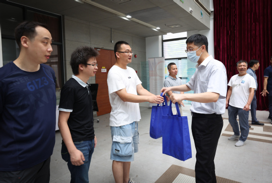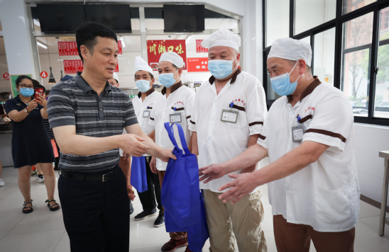炎炎夏日,炙浪滚滚,奋进的上理校园仍有很多教职工坚守在暑期工作一线。7月22日上午,校党委书记吴坚勇、校长丁晓东、党委副书记孙跃东、副校长张道方、副校长张华一行在党委(校长)办公室、保卫处、后勤管理处、基建处、工会等相关部门负责人的陪同下视察校内暑期各项工作,慰问暑期坚守工作一线的教职工。 校领导首先来到正在早餐服务的第二食堂,对食堂员工表达了亲切慰问,并现场查看暑期备餐情况。针对暑期高温存在的食品安全风险,校领导提出要时刻紧绷“食安工作无小事”的安全弦。 在招生工作办公室,校领导仔细询问了本科招生录取工作进展情况,对录取通知书印制、封装、录取投档等准备工作进行了详细的了解。校领导叮嘱大家,招生录取工作关系着学校的声誉和办学质量,希望大家严守招生纪律,保证生源质量,强化服务意识,确保按时顺利完成今年招录工作。 在军工路334号校门,校领导亲切慰问在岗安保人员,仔细询问暑期校园安保、入校疫情防控的工作安排。校领导表示,安全保卫工作是学校安全的第一道防线,校门是暑期防疫的第一关也是重要屏障,暑期我们要坚持常态化疫情防控,做到精细化管理,切实保障在校广大师生的生命健康与财产安全。 校领导一行先后走访了第三教学楼建设工地、图书馆、保卫处监控室、信息办及学生公寓等地,慰问高温酷暑在岗辛勤工作的教职工和施工人员。每到一处,校领导都细致关心大家的健康和工作状况,对大家不畏酷暑、全心全意为学校事业发展奋战第一线的奋斗精神表示赞扬和感谢。同时,校领导叮嘱大家要做好安全生产,注意防暑降温,以饱满的身心状态投入到为广大师生提供优质服务工作中去。 学校还安排了相关负责同志慰问复兴路校区和军工路1100号校区暑期在岗的工作人员。