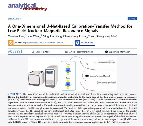 近日,医疗器械与食品学院生物医学工程专业博士研究生侯学文在国际顶级期刊《分析化学(Analytical Chemistry)》(SCI 1区,IF=6.986)上以第一作者发表论文“基于1D-Unet的低场核磁共振信号校正转移方法研究(A One-Dimensional U-Net-Based Calibration-Transfer Method for Low-Field Nuclear Magnetic Resonance Signals)”。侯学文与王欣教授为共同第一作者,聂生东教授为通讯作者。 众所周知,由于磁共振分析仪器受磁场均匀性、磁化率和环境温度等多种因素的影响,同一样品在同一型号的不同分析仪器上测量的波谱信号存在较大差异,这就导致了在某台仪器上建立的统计分析模型无法迁移至同一型号的其他仪器上使用。然而,要在每一台分析仪器上重建统计分析模型是一个耗时且昂贵的过程。因此,针对这一基础性科学问题,聂生东教授团队基于直接校正算法的理论,提出采用迭代法更新校正矩阵,以降低校正误差,开创性地设计了用于低场核磁共振信号校正的1D U-net校正网络。采用该校正网络,可以使同一样品在同一型号的不同分析仪器上测量的波谱信号基本上达到一致。该研究利用两种不同体系的样本,从波谱响应、主成分分析和统计分析模型矫正转移三个方面分析了直接校正算法与U-net网络的校正差异。U-net校正网络在低场核磁分析仪器上的成功应用,为基于深度学习的波谱校正奠定了基础。这种方法还可以推广至对不同厂家生产的医用高场磁共振成像设备的多维图像信号的校正,从而有效解决利用人工智能处理多中心医学图像数据的问题。 论文链接:https://doi.org/10.1021/acs.analchem.1c00765 |
