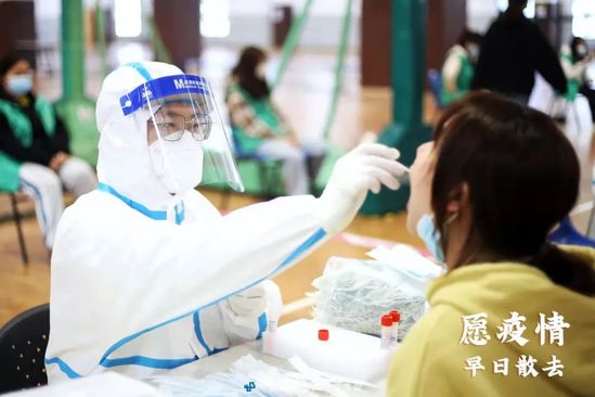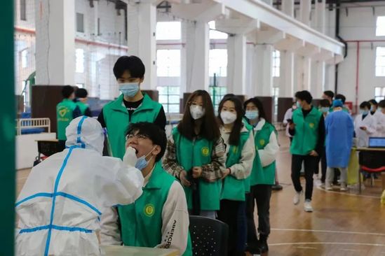 “我已到岗,随时待命” 高效、有序,一个上午完成南校全员的核酸检测,是百余名师生志愿者共同努力的结果。“我已到岗,随时待命!”绿马甲们一路守护。步入体育活动中心,从进门到采样完毕不过20分钟。“同学你好,请出示检测二维码,把手机屏幕调亮。”每每想起,言犹在耳,你们是这黑暗世界里永恒的光。
