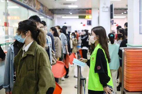 “这是上理人最美的样子” 备货充足、理性购买,人人戴口罩、间隔取餐,打包盒免费、鼓励外带……一个坚定的眼神,一句温柔的提醒,一道绿色的风景线。轻轻扣响寝室的门:“同学,你们的饭!”病毒可以被隔离,但温暖不会。