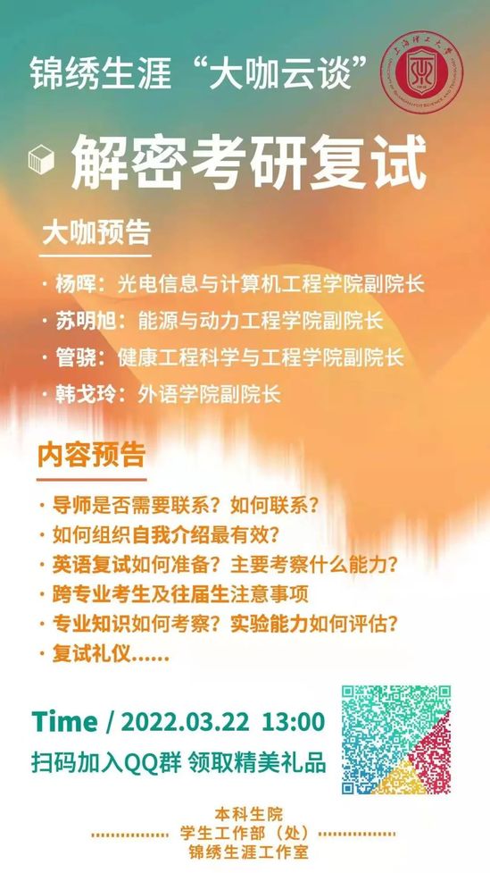 机械学院召开线上教学工作会议 就业服务“更心动” “导师是否需要联系”“如何组织自我介绍”“跨专业考生如何准备”“复试可以化妆吗?”……近期正是新一届研究生复试的关键时期,“锦绣生涯工作室”邀请来自各学院的学术大咖“云端”解密考研复试会碰到的关键问题,助力同学们掌握面试技巧、增强复试信心。针对本校研招复试工作,研究生院也在紧锣密鼓做计划、创条件,保证每一个考生不因疫情影响入学,努力“选好苗”“播好种”。