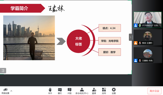 问卷调查部分内容 目前,已有160名优秀学长学姐加入学霸导师团,学校的学业帮扶工作已经全面转到线上,帮助同学们形成“学习——复习——练习”的完整线上学习链。除了“学霸课堂”,还有聚焦科技创新的“江畔聆海人文沙龙”、分享学习经验的“线上学习经验分享会”、解决个体疑惑的“一对一”咨询活动……有针对性地帮助同学们巩固学习内容、夯实学业基础。