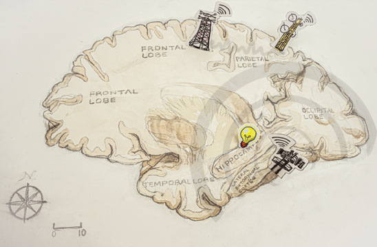 图1. 海马体HPC介导大脑皮层多功能脑区的活动同步(图:郭修贤)。