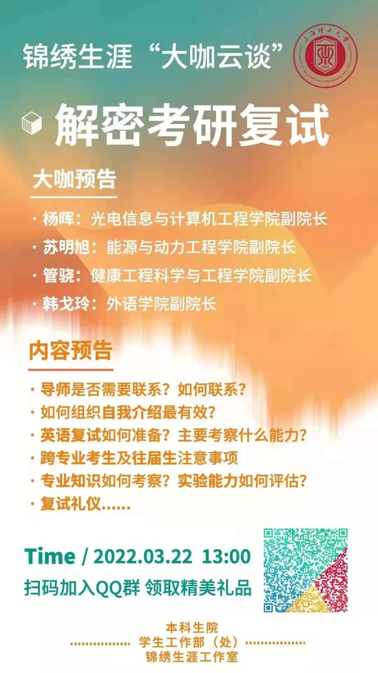 “一战”成功后如何联系到往届上岸的学长提前准备读研生涯?“一战”不成的话是否要“二战”?放弃“二战”的话如何迅速切换到求职“频道”?这些问题环环相扣,如何“解扣”就得看经验丰富且熟悉不同学生不同情况的辅导员了。能动学院的考生分布在军工路南北两个校区,辅导员陈红梅、陈颖等老师梳理了所有复试学生的时间节点,组建年级复试学生群,因有同学在周末复试,学院毕业班的辅导员自愿延长值班时间,为每一位复试同学助力。在材化学院,辅导员宋一婷与考研学生逐一联系,鼓励“过线”的同学积极准备复试,点对点推荐往届考研成功的校友,搭建朋辈帮扶的桥梁;而对成绩偏低或打算“二战”的学生则提出中肯的建议,一对一指导简历制作,点对点推荐企业职位。