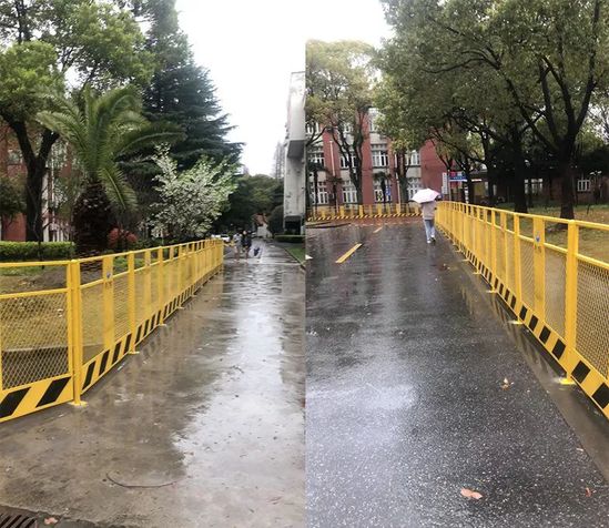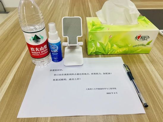 健康学院为复试考生精心准备的手机支架和祝福语 校园内,在保卫处的密切配合下,后勤处经过实地勘察和路线设计,搭建复试场地专用通道。因疫情影响,通道所需围栏无法租赁及采购,后勤处紧急与校内施工单位地江集团协调调拨了400米围栏,16名工人冒雨施工,赶在考研复试前将围栏安装完毕。同时,保卫处也及时调整完善安保方案,由2名保卫干部及6名安保队员对专用通道进行全时段网格化巡逻,做好对潮汐通道固定岗和环建学院出入通道以及综合楼周边等多处点位的人员排布。为了能够及时进行人员疏导和突发情况处置,6名安保队员从宿舍临时搬至综合楼C区,保卫处还协调好校园内停车问题,做好对封闭区域以及周边环境全天候的消杀工作。