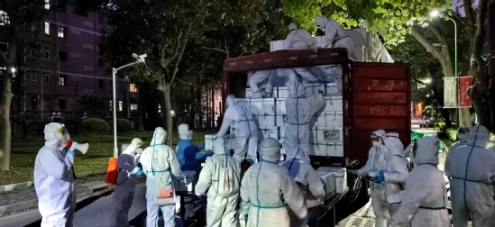 师生志愿者和后勤员工齐上阵卸下物资 这批蔬菜是学校收到的第二批定向蔬菜捐赠。4月7日,由河南捐赠的10万斤蔬菜送抵上海理工大学,并已出现在校内师生的餐盘里。 供稿:新闻中心 |