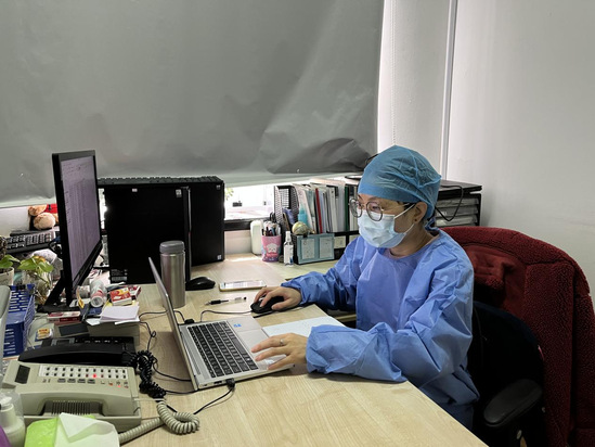 周骛与学生探讨课题 “我们互相鼓励,在学生身边我非常心安” “‘妈妈多睡觉’‘知道了,妈妈’‘妈妈辛苦了’……我们经常在微信群里这样说,说实话张老师真的和我们的妈妈差不多了,有啥问题、困难,她都会尽力帮我们解决,只要她在,我们一点都不怕。”中英国际学院教工党支部宣传委员、辅导员张卫的学生庄泽濠说道。 在复兴路校区与疫情鏖战的关键时刻,张卫认为,主动请战抗疫一线是送给今年16岁“政治生日”的最好礼物。守在学生身边超过两周的时间里,她没能好好洗过一次热水澡。每天除了3个小时的睡眠时间,她几乎都高速运转在扫楼发放物资,整理报送核酸、抗原检测数据,电话安抚家长等各项事务中。