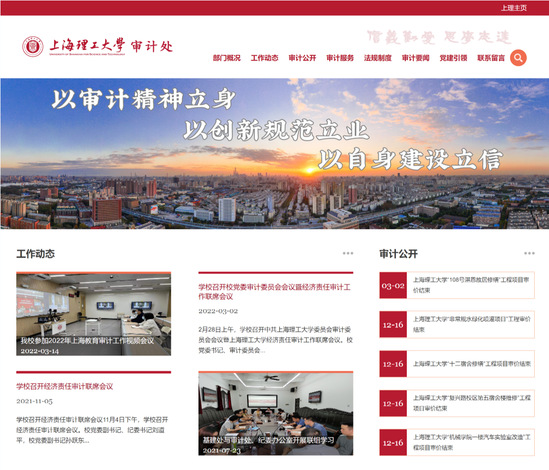 疫情是对所有上理人的一次“大考”,在学校党委的领导下,全校业务部门贯彻落实疫情防控要求,把疫情防控的压力转化为提升管理服务能力的动能,调整、再塑业务流程,保障各项工作平稳有序运行,力争实现疫情防控与事业发展两手抓、两促进,持续为高水平地方大学建设保驾护航。 “响应式审计”,自适应战疫大环境 及时发布审计工作动态,完善审计公开机制,细化审计服务板块,梳理校内外法规制度,优化版面设置以提升阅读舒适度及信息获取便利度,自适应手机等移动终端浏览环境……作为面向广大师生的服务窗口,4月19日,审计处新改版的部门网站上线,有力支撑学校审计工作更好地开展。