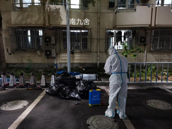 校内核酸采样组志愿者做好防护,准备进楼采样 “第一时间阻断风险,转运有速度更要有温度” 近期在校园里,你可能看到过这样的一个令人感动的背影:隔离结束返回宿舍的同学身旁,跟着一个几大包塑料袋遮过头顶、身型高高瘦瘦的“背包大侠”。他是北区转运组负责人、机械学院党委书记刘德强,他身上背负的塑料袋里装满着护送学生的棉被、衣服、日用品等行李。为第一时间切断疫情传染源,安全、快速、准确安排学生转运,他们必须迅速行动,每天都是24小时待命,经常是通宵工作。 在“两点一线”护送校内转运学生的过程中,最难熬的不是面临的感染风险和身体的疲劳,而是面对紧张焦虑、不知所措的学生所经受的心理考验。未知的隔离条件和对病毒的恐惧经常让一些学生陷入崩溃。一次次的物资输送、一句句温暖的关切,他们让学生卸下不安和防备,平静地面对隔离生活。“接到转运通知后,我们必须立刻行动,尽最大可能减少病毒传播的时间和空间,还要确保整个过程严格遵循转运工作规范,做好学生心理疏导工作,建立健康台账,加强人文关怀,让转运工作既严格规范又不失温度。”马克思主义学院党委书记、南区转运组负责人李杰说道。
