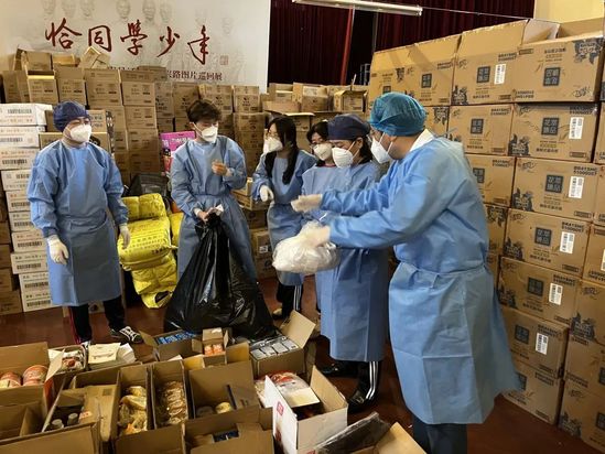 应急攻坚突击小分队通宵达旦分拣货物 自开通校内线上购物以来,特别是五一期间,“尚理送”平台累计收到了近2万个订单。面对近如此巨大的分拣工作量,党委组织部部长孙红发出了召集令:“各位老师,18:00-22:00,在小礼堂分拣订单,保障‘尚理送’正常运转,麻烦有空的老师报名参加!”急同学们所急,机关干部、学院老师们纷纷响应。报订单、撕胶带、贴单子、分拣货品、分装袋子……学校总会计师赵明也来到仓库,与突击队员们一起连续多日通宵达旦地分拣物品,只为让同学们尽快拿到订购的物资。“疫情下,全校师生众志成城、齐心抗疫,希望物品送达能缓解同学们足不出宿舍的心情焦虑,只要同学们‘小口袋’里的食品和生活用品充实起来了,再累也值了。”突击队队员、党委宣传部副部长卢萧老师说道。 “志”在心中,“愿”在行动!上理师生志愿者们化身温暖的“大白”“小蓝”,奋战“疫”线,为上理筑起了一道安全屏障。让我们携手前行,期待一个如常的校园早日回到你我的身边。