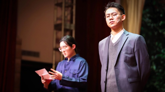 王哲涵(右)参演学校《刘湛恩》大师剧 曾在2021年获得第七届中国国际“互联网+”创新创业大赛国赛银奖的刘俊杰,在湖南衡阳参加了云典礼,毕业之时,当初坎坷的参赛经历也一幕幕浮现于脑海。那场因疫情被搬到线上开展的比赛,需要安静的场地、稳定的网络、合适的背景等等,一筹莫展之时,学校的老师们腾出了仅有的办公地点,用投影仪为参赛团队设置了比赛背景……他一边回忆一边跟陪同观看典礼的妈妈分享着感想,妈妈说道:“回过头来看,这段艰难的日子你都熬过来了,今后还有什么可畏惧的?这何尝不是人生中一段宝贵的经历呢?”刘俊杰也深感这伴随着疫情的大学时光,自己学会了危中寻机,收获了成长。