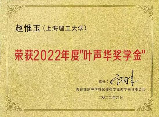 近日,2022年度“叶声华奖学金”评选结果揭晓,上海理工大学光电信息与计算机工程学院仪器仪表工程专业硕士研究生赵惟玉同学喜获此殊荣,成为全国十名获奖者之一。据悉,获奖者中只有3位是硕士,赵惟玉同学是其中一位。