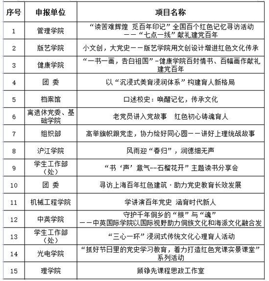 2021年上海理工大学文化建设优秀项目 供稿:党委宣传部 文:翁佳 |