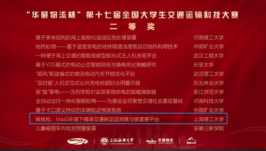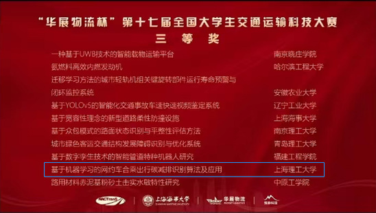 7月9日至10日,“华展物流杯”第十七届全国大学生交通运输科技大赛决赛以线上形式举行,经过激烈角逐,由我校管理学院李文翔老师指导的两支参赛队伍分别斩获全国二等奖和三等奖,是我校在该项赛事中获得的最好成绩,取得了历史性的突破。 全国大学生交通运输科技大赛由中国交通教育研究会、教育部高等学校交通运输类专业教学指导委员会主办,是我国交通运输领域参赛高校最多、参与学生最多、社会影响力最大的全国性大学生科技竞赛项目,也是我校认定的纳入高教学会竞赛评估的A类学科竞赛。本届大赛以“数智交通、低碳运输”为主题,由上海海事大学、中国交通教育学会院长分会承办,共有177所高校的1473件作品参赛。经过各参赛学校校内选拔推荐、全国初赛双盲网评,最终确定了94所高校共213件作品进入决赛,入围率仅为14%。 我校于今年3月18日至4月22日举办了第十七届全国大学生交通运输科技大赛校内选拔赛,相关专业同学踊跃报名参加,经过初评,共有12组来自不同赛道的作品被推荐参加全国赛,其中管理学院交通系统工程系的本科生项目——“碳钱包:MaaS环境下精准交通碳足迹测算与碳普惠平台”(团队成员:张逸文、杨子杰、李笑梅、李慈航、唐诗航)和研究生项目——“基于机器学习的网约车合乘出行碳减排识别算法及应用”(团队成员:李媛媛、于天翔、程佳楠、陈思薇、欧阳慧洁)经过层层选拔,成功入围决赛,并在最后决赛答辩中表现优异,分别获得全国二等奖和三等奖的佳绩。 成绩背后是参赛学生团队成员的不懈奋斗和交通系统工程系指导教师团队精心的辅导以及管理学院上下的团结协作。备赛期间,恰好是上海疫情最严峻的时期,同学们在完成日常课程学习的同时,坚持每天与指导教师在线讨论。指导教师李文翔凭借专业的洞察力,对学生们的作品精心修改和反复打磨,累计完成作品迭代更新二十余版。特别是在决赛准备期间,交通系统工程系副主任刘魏巍副教授还专门为学生们组织了预答辩及辅导会议,邀请了专业教师董洁霜副教授、王嘉文副教授以及浙江大学城乡规划设计研究院上海分院院长汤諹博士,分别从创新性、专业知识、应用价值、完成度等不同的维度对学生们的作品提出了修改建议,对作品获奖起到了关键作用。同时,管理学院副院长张峥和教务主任束义明主动关心并推动学生们积极参赛,在疫情期间帮助学生们解决各种困难,为各团队顺利完成比赛提供坚实保障。 本次大赛取得突破性的成绩,不仅增强了我校交通工程专业学子参加创新创业的信心,也充分体现了我校交通工程专业人才培养的成效,同时为我校交通工程专业今后的学科评估、工程教育专业认证奠定了良好的基础。