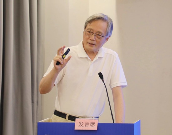 温泽远向胡卫赠书 在专家主题发言环节,祝伟敏、冯绍雷和王勇分别代表编委、顾问和译者作了题为“公共外交和中国形象”、“全球加速转型下的公共外交”和“发挥外语优势,助力公共外交”的演讲。上海市政协对外友好委员会常务副主任、上海公共外交协会副会长、上海公共外交研究院理事、丛书编委代表祝伟敏表示,两本译著填补了国内“公共外交”方面专业书籍较为缺乏的空缺,有利于加强应对复杂国际形势的理论指导,尤其是我们需要通过公共外交改变被西方扭曲的中国形象。同时,他通过回顾在泰国亲身经历的案例,呼吁在公共外交领域投入更多“人财物”,做到“学会沟通,融入世界”,通过毕生学习和积累做好提升公共外交水平这一道时代命题。教育部人文社会科学重点研究基地华东师范大学“俄罗斯研究中心”主任、上海公共外交研究院专家咨询委员会委员、丛书顾问代表冯绍雷谈道,在全球加速转型的背景下,要充分认识到公共外交与各项工作之间的相互关系,以创新精神推进公共外交体系构建。他在政策关怀和人才培养上,提出了切实可行的建议,具有极大的参考价值。上海理工大学外语学院翻译硕士教育中心主任、《城市外交》译者王勇教授回忆其在翻译著作的过程中,深刻地感受到公共外交在促进城市间美好交流,提升城市治理水平中的巨大作用。他也介绍了上海理工大学外语学院为了支持译丛的翻译工作所作出的努力。