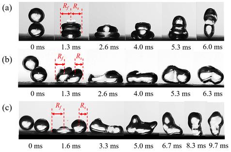 三种基本状态下液滴的融合反弹行为