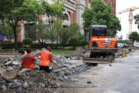 申城持续高温“炙烤”,超过40℃日数破历史纪录……当大多数市民一边刷着气象记录一边孵着空调的时候,上理校园的建设工地、修缮场地也是“热气腾腾”。机器的轰鸣声、工具的敲击声、基建后勤教职工的脚步声、工人们的交流声汇成了动听的“暑期校园建设协奏曲”,上理的校园环境也将在这支协奏曲里变得越来越美。