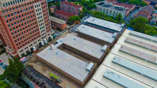 第七期学生公寓施工现场 516号校区改扩建工程全面加速建设,计划年底完成结构封顶;第七期学生公寓钢结构安装完成;海安路地下通道工程有序推进,预计9月底竣工;第四教学楼大修、图文信息中心维修工程、复兴路校史馆建设……涉及到十多幢校园建筑的大修工程也在暑期全面开工;军工路1100号校区总计6万多平方米的教学楼、图文信息中心、学生公寓等改扩建工程工作也在紧锣密鼓地推进中。