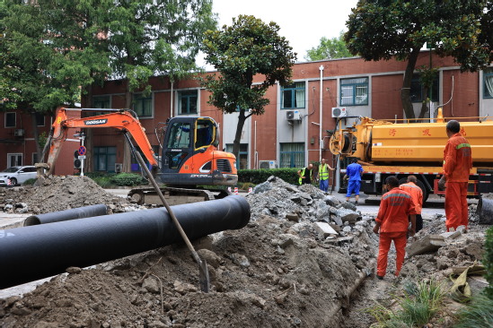 修缮一新的学生宿舍 五公寓三号楼、三公寓三号楼、二公寓三号楼……今年暑期共有19幢宿舍楼的1100余间寝室需要进行修缮,粉刷墙面、整修门窗、更换灯具、整修卫生间……“我们辛苦一些,学生的生活环境就可以更好一些,希望同学们可以在上理感受到家的温暖。”后勤管理处金志伟老师说到。 “校园‘毛细血管’改造,让校园生态更美好” 地下给排水管网,是上理校园的“毛细血管”,承担着上理师生日常生活的运转,与校园生态环境品质、师生幸福感息息相关。为有效利用假期校内人少车少的施工机遇期,学校军工路校区北区在暑期实施地下排水管网改造工程,原有雨污水管道混接、内部淤积等问题均得到整改,校区内排水不畅、雨污混排等问题得到有效解决。经过改造,将大大提升校园污水处理能力,也将直接助力学校周边河道水质改善和环境治理。