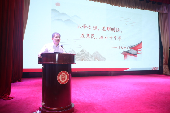 为深入学习习近平新时代中国特色社会主义思想,贯彻落实习近平总书记关于教育的重要论述,积极响应“培养担当民族复兴大任的时代新人”号召,不断推进本科生班主任融入学校“三全育人”工作的创新与发展,学校于9月5日在大礼堂举办2022年度优秀班主任表彰暨班主任专题培训。校党委副书记孙跃东,教师工作部部长、人事处处长朱坚民出席活动,2021—2022学年优秀班主任代表、2022级全体新生班主任和其他年级新聘任班主任参与培训。活动由教师工作部副部长郑静主持。 朱坚民围绕新时期高校立德树人根本任务以及党和国家对新时代高校教师的期望与要求,作了“坚守教育初心,勇担育人使命”主题报告。他从“新型班主任制度设计”“班主任工作职责”“班主任工作方法”和“班主任工作考核” 四个方面为班主任进行工作培训。他指出,班主任应是学富五车的“经师”和传道解惑的“人师”的统一体,要与辅导员等共同组成学校育人队伍,以“立德树人”为工作核心,运用“五大创新工作方法”,完成“六项工作要求”,既要成为学生思想、学业和生活未来规划的引导者,同时要成为班级团体建设不断优化发展的带队人。 优秀班主任经验分享环节,机械学院专业教师王神龙围绕如何培养学生对学校和专业的热爱、如何提升集体凝聚力、提升学生学术能力和生活职业规划能力等方面,介绍他在思想政治教育、班风学风建设、班级管理、学术和就业指导等方面的探索经验。校工会副主席、校妇女工作委员会专职副主任杨向宁以“真情付出,亦师亦友伴成长”为主题,围绕“初衷—实践—思考”向新任班主任分享3年来的班主任工作实践。 为便于班主任更深入了解学校各项育人工作的开展、快速掌握学生管理工作的相关技能,党委学生工作部副部长、学生处副处长刘伟,教务处副处长宋丹萍和信息化办公室高春昌分别就“2022年迎新工作”“大类分流背景下的学风建设”和“电子班级管理系统使用”三个方面,为新任班主任做政策宣讲和实务技能培训。 孙跃东在总结讲话中结合学校抗疫工作和育人工作,强调班主任老师应更好地把握工作内涵,教书育人并重,言传身教结合。具体应做到以下三点:一是涵养师徳,强化思想引领,要站准定位,既要了解和理解学生、做好育人工作,也要担起社会责任、传播正能量;二是严学笃行,提升育人能力,要提升专业素养,同时发挥个人优势强化学生管理工作,助力学生开拓视野;三是加强协同,落实“三全育人”,与辅导员和其他老师进行有效沟通,建立协同互助机制,面对学生个性化诉求,做到解决及时化、高效化、包容化,为学校整合育人资源、推进“三全育人”落地生根努力奉献,在育人工作中发挥重要引导作用。 为加强班主任工作指导,提升育人工作水平,教师工作部在学校党委指导下编写了《上海理工大学班主任手册》。孙跃东为各学院班主任老师发放班主任手册。2021—2022学年中,一批班主任老师兢兢业业,敬业爱生,获得了学生的高度好评,经综合考核被评为“优秀班主任”,朱坚民为“优秀班主任”代表颁发证书表彰。