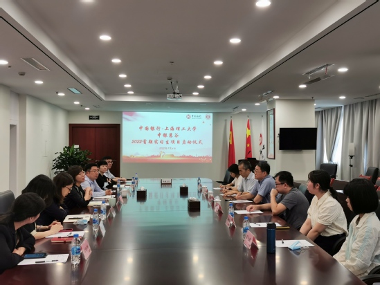 9月6日,管理学院副院长张峥、金融系主任张青龙、青年教师苏孝珊带领学院学生前往中国银行杨浦支行,参加上海理工大学与中国银行合作共建的产教融合基地“中银慧谷”2022首期实习生项目启动仪式,中国银行杨浦支行副行长陆莹、行长助理贾浩浩、行政事业机构部副主任刘勤、个人金融部主管张维琳、公司金融部主管王菁如、交易银行部主管杨玉雯和运营中心主管欧阳婷婷等出席仪式。启动仪式由刘勤主持。 启动仪式上,陆莹首先回顾了中行与上海理工大学及管理学院在产学研、人才培养等领域的合作历程和成果,对管理学院的人才培养表示肯定,中行杨浦支行非常重视本次学生实习项目,制定了详细的学生轮岗实习安排,所有实习生都能在一个实习周期经过几个核心业务部门的实习培训。 张峥对中行杨浦支行的热情接待表示感谢,指出学院重视学生专业实践能力的培养,合作项目提供了良好的专业实践平台,对于管理学院人才培养具有重要意义,希望学生们能珍惜宝贵的实习机会,将所学理论与金融实践有效结合。 随后,实习生分别作自我介绍,带教老师张维琳、王菁如、杨玉雯和欧阳婷婷分别介绍了各自部门的业务特征,并对实习同学表示欢迎,期待同学们可以通过实习加深对银行业务架构的认识,收获成长。金融系主任张青龙介绍了金融专业人才培养的特色,在课程建设、学科竞赛、案例研究、课题研究等方面可加强合作。 启动仪式结束后,大家共同参观了中国银行杨浦支行的相关业务部门。