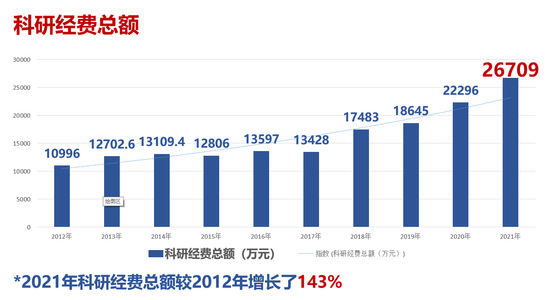 2012-2021年学校科研经费总额 科研成果的取得离不开创新资源的集聚,近五年,学校打破学科之间、学校之间、校地之间的“围墙”,携手中国商飞、光明集团、上海电气、海南药监局、上海市公利医院,建立校地、校企、校医的全面战略合作,持续增强科技创新策源能力。