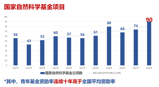 2012年-2022年国家自然科学基金项目立项数 从“0”到“1”,不等于“无中生有”,科研成果的取得离不开学科平台的建设。学校不断加强创新平台体系建设,省部级以上科研平台从2012年的13个,发展到目前的50个。