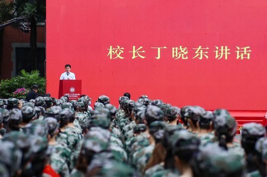 教师代表单彦广教授发言 校长丁晓东以“争当心怀国之大者的新时代学人”为题发表讲话,他向2022级新同学表示热烈的欢迎,向十天来辛劳付出的学生教官们表示崇高的敬意和衷心的感谢。针对如何在变化交织的外部形势下适应学习新形态,他围绕“为什么学、学什么、怎样学”三个核心问题,带领新生们解锁大学学习的专属打开方式。他深情寄语新生心怀“国之大者”,为民族复兴而学,在大学中不断汲取养分、积蓄力量。他希望新生们真正来一场学习方式的转变,从被安排学习向自主学习,从“老师说-学生听”的学习向探究性学习,从知识学习向能力提升。不断在问题求解中学,在沟通交流中学, 在学科交叉中学,真正寻找到最适合自己的学习乐土。从上海理工大学出发,走向更大的世界!