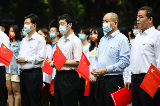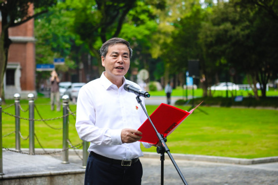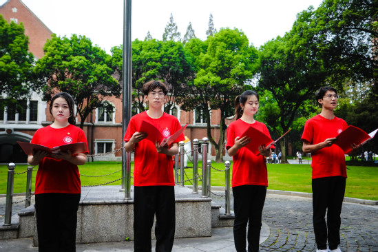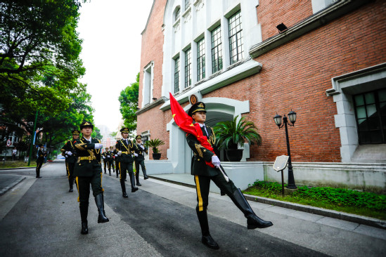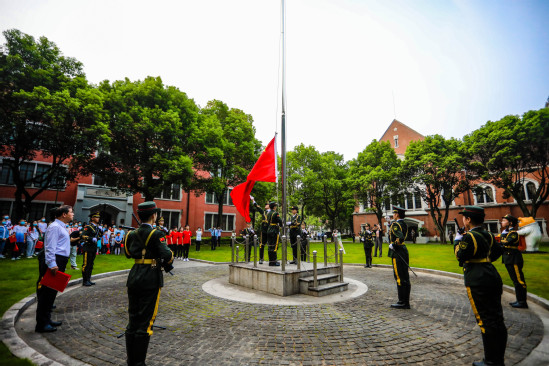 为庆祝中华人民共和国成立73周年,喜迎党的二十大胜利召开,10月1日清晨,学校在军工路校区北区国旗广场举行升旗仪式。校长丁晓东,党委副书记、纪委书记刘道平,党委副书记孙跃东,党委副书记、副校长盛春,部分党政部门和学院党组织负责同志,师生代表约300人参加仪式。仪式由盛春主持。 上午7时,国旗班的同学高擎国旗,迈着整齐的步伐走向升旗台。在庄严的国歌声中,升旗手将鲜艳的五星红旗缓缓升起。大学生艺术团丁嘉妮、袁潇语、荆乐银、唐语凡同学向祖国献词,“青春心向党,百年再启航”的深情誓言展现了青年人强国有我、勇担使命的坚定信心。 盛春代表学校党政班子,向全校师生员工和海内外校友致以节日问候和美好祝福。他指出,今年是注定不凡的一年,全校师生共同见证冬奥会中中国的大国风范;在新冠肺炎疫情阻击战中,上理人同舟共济、合力抗疫。在中国共产党第二十次全国代表大会即将召开之际,全校党员干部和师生员工要紧密团结在以习近平同志为核心的党中央周围,守牢疫情防控、校园安全的底线,深入推进高水平大学建设,用实干实绩迎接党的二十大胜利召开。他号召同学们传承上理人心怀家国、矢志报国的光荣传统,在时代前进的滚滚洪流中实现青年人应有的人生价值。