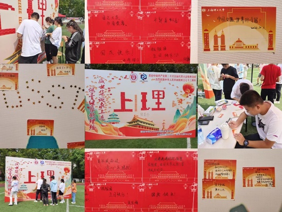 “红色故事演讲”活动 同学们在“光明展板”畅所欲言 以青春舞动旋律,谱写运动新篇章 基础学院团委办公室体育部于10月1日及2日在1100号校区操场和516号校区一教分别设置赛区举办了“以青春舞动旋律,谱写运动新篇章”十一运动会,包括趣味运动会和棋类比赛两项,覆盖2000余名在校大一新生。活动秉持“以增进同学友谊、团结为主”的原则,鼓励各位同学积极参与。活动培养了同学们加强体育锻炼的思想意识,增进了彼此的友情,也体现了携手共进的团队精神。 在1100号校区操场举行的趣味运动会 在516号校区举行的“时代交织、纵横之间”棋类比赛 薪火相传忆峥嵘,弦歌不辍续征程 10月2日至5日,基础学院易班工作站在清真食堂附近组织开展“薪火相传忆峥嵘,弦歌不辍续征程”国庆系列活动。“红歌视频接力”“上理红史我了解”等云端活动与“金秋集祝福”“上理红史抢答赛”等线下活动同步举行,同学们踊跃参与。活动使同学们进一步了解了上海理工大学的红色历史,也表达了对祖国的诚挚祝福。 同学们歌唱“我和我的祖国” 线下祝福发放活动 基础学院将继续开展红色教育,综合运用多样化的文体活动,鼓励同学们传承红色精神,不忘初心,砥砺前行,以青春之我谱写时代华章,献礼祖国。