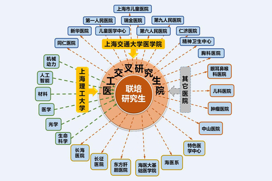 医工交叉研究生院人才培养矩阵 十年来,在推进产教融合方面,学校不断完善联合培养管理机制,健全“双导师”队伍,参与实践指导的联合导师达1300余人,3000余名专业学位研究生进入基地参与实践,为专业学位研究生的培养提供实践平台保障。在深化推进科教融合中,学校积极探索“上理工1+N”多元化的联合培养新模式。与中国科学院上海分院、国家粮食局、上海农业科学院等科研院校开展研究生联合培养,聘任硕导、博导300余名,年均联合培养研究生300余人。连续4年,学校有7名研究生获得“全国工程硕士实习实践优秀成果获得者”荣誉称号,位列上海市高校第一。