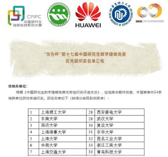 学校研究生在第十七届中国研究生数学建模竞赛中总分排名全国第一