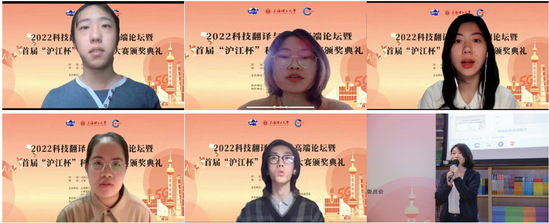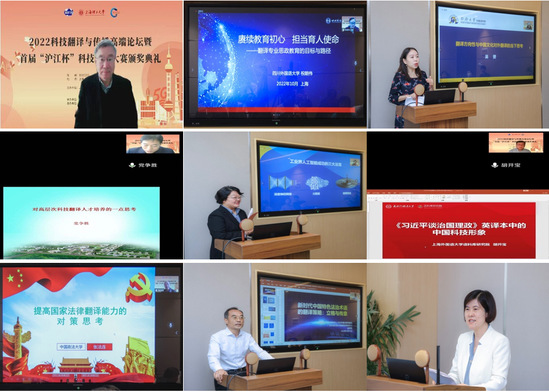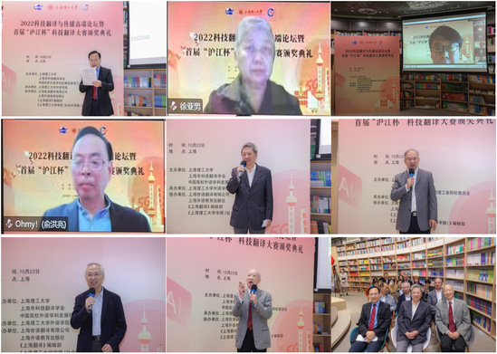 10月22日,2022年科技翻译与传播高端论坛暨首届“沪江杯”科技翻译大赛颁奖典礼以线上线下结合的方式举行,共有1500余名专家、学者和师生参加。我校共61名同学获奖,在所有参赛院校中获奖人数最多。本次活动由我校、上海市科技翻译学会以及中国高校外语学科发展联盟理工类院校委员会主办,外语学院承办,上海世语翻译有限公司、上海外语教育出版社、《上海翻译》编辑部以及《上海理工大学学报(社会科学版)》编辑部协办。 我校副校长蔡永莲、上海外语教育出版社副社长叶青在开幕式上分别致辞。蔡永莲指出,高等教育工作者必须心怀“国之大者”,着眼大局、展望未来,面向世界、把握大势,从战略高度和国际视野来构建人才培养方案,推进教学科研,促进科技与翻译、传播的交叉融合,助力科技文化走出去,展示真实、立体、全面的中国,提升国家形象和国际影响力。外语学院正发挥学科优势,积极服务国家战略发展,在科技翻译人才培养和科技传播领域发挥着积极作用。叶青从出版工作角度出发,强调了翻译和科技翻译对讲好中国故事的重要意义,指出讲好中国故事是为了构建体现中国理念的话语体系,提升政治话语权,营造有利于我国进一步发展的国际舆论环境,更加准确自信地传播中国声音。 论坛上,结合当今国情与科技翻译及翻译专业的发展现状,围绕如何提高翻译能力助力国际传播、科技对外翻译的课程思政目标与路径、翻译的方向性与中国对外翻译、高层科技翻译人才培养等热门话题,黄友义、祝朝伟、吴贇、党争胜、张爱玲、胡开宝、张法连、赵军峰等国内八位著名翻译研究专家做了主旨发言。上海大学翻译研究与出版中心主任赵彦春,复旦大学外国语言文学学院翻译系主任陶友兰,上海交通大学外国语学院党委副书记朱一丹,我校外语学院副院长韩戈玲、张乐,MTI教育中心主任王勇、副主任王婀娜和杨本明担任主持。 论坛主旨报告环节,中国译协常务副会长、中国翻译研究院副院长黄友义教授,四川外国语大学副校长祝朝伟教授,同济大学外国语学院院长吴贇教授,西安外国语大学副校长党争胜教授,上海外国语大学高级翻译学院院长张爱玲教授,上海外国语大学语料库研究院院长胡开宝教授,中国政法大学张法连教授,广东外语外贸大学翻译学研究中心主任赵军峰教授分别作主题发言。论坛最后,中国高校外语学科发展联盟理工类院校委员会秘书长、外语学院院长刘芹教授进行了总结发言。 学术论坛结束后,首届“沪江杯”科技翻译大赛颁奖典礼举行。在全国翻译专业学位研究生教育指导委员会的指导下,本次科技翻译大赛由我校、上海市教委外国留学生世语实践基地、上海市科技翻译学会主办,外语学院、《上海理工大学学报(社会科学版)》、上海世语翻译有限公司承办,吸引了来自486家院校及企事业单位约8000名选手参加,凸显了青年学子对从事科技翻译工作的强烈兴趣。大赛评审委员会组织130位专家进行了初评、复评和总评三轮匿名评审,最终评出一等奖12人、二等奖32人、三等奖196人。 大赛组委会副主任委员、外语学院院长刘芹,上海外语教育出版社营销中心副主任徐君,上海世语翻译有限公司董事长曹斌,上海一者信息科技有限公司总经理张井为获得三等奖的学生代表颁奖。上海市科技翻译学会秘书长翁国强,大赛特邀专家上海大学翻译研究与出版中心主任赵彦春,大赛组委会委员上海应用技术大学外国语学院院长潘智丹和上海电机学院外国语学院院长张玉双为获得二等奖的学生代表颁奖。大赛组委会主任委员、大连外国语大学原副校长杨俊峰和大赛组委会副主任委员、广东外语外贸大学翻译学研究中心主任赵军峰为获得一等奖的学生代表颁奖。来自新疆大学、西安外国语大学、江苏理工学院、南京信息工程大学、上海大学和我校的6位一等奖获奖学生发表感言。 颁奖典礼上,中国英语教学研究会副会长、教育部高校翻译专业教学协作组成员、联合国语言人才培训体系专家委员会专家、大连外国语大学原副校长杨俊峰,外交部翻译室原主任徐亚男,中国外文局当代中国与世界研究院对外话语创新研究中心主任范大祺,扬州大学原副校长俞洪亮发表了致辞。上海外国语大学原常务副校长谭晶华,上海翻译家协会会长魏育青,上海外国语大学高级翻译学院荣誉院长柴明熲和上海海事大学外国语学院原院长左飚进行了特邀发言。 10月22日,恰逢中国共产党第二十次全国代表大会闭幕日。面对世界百年未有之大变局,我国发展的内部条件和外部环境正在发生着深刻复杂的变化。我们在翻译领域的育人育才应积极服务国家发展战略。本次活动的圆满举办响应了翻译学科发展与科技知识传播的要求,对国内科技翻译能力的提升和国际传播能力的建设、对外传播话语体系的构建做出了卓越贡献,也向全国兄弟高校展示了我校外语学院翻译学科建设和翻译人才培养的成果。