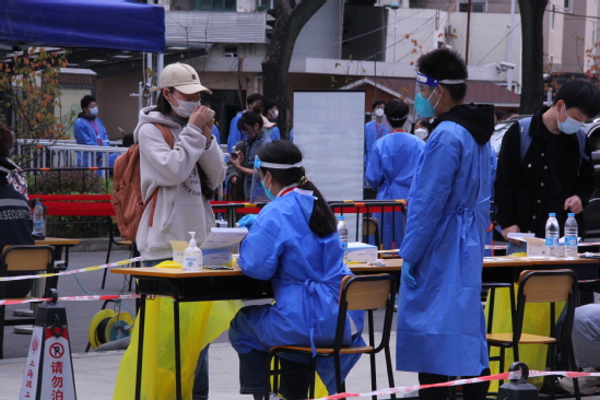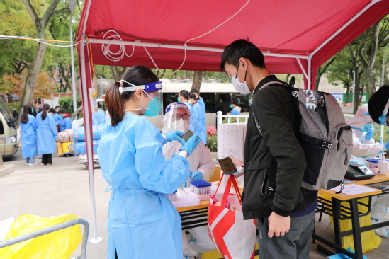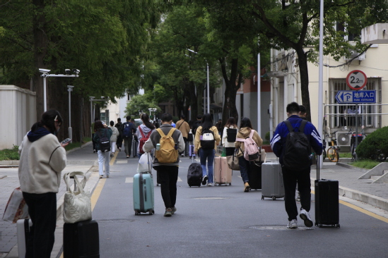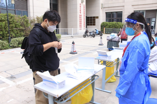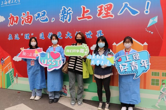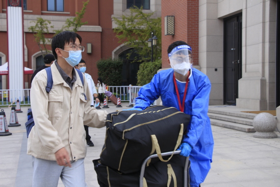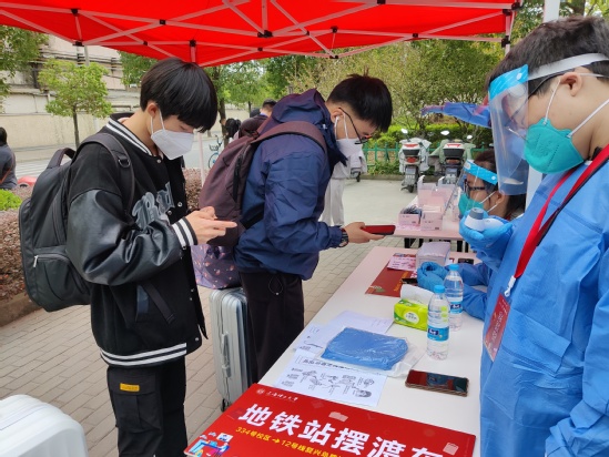 师生志愿者进行查验检测 暖心帮助,热情服务“理” 在复兴岛地铁口、学校门口、新生宿舍门口等迎新服务点,学生咨询点、行李车借用点、短驳车接待处,师生志愿者的身影无处不在,他们一早便到达岗位等候新生们的到来。他们耐心解答学生及家长提出的各类问题,及时为到校学生提供行李运输服务。新生们纷纷表示感受到了家的温馨。