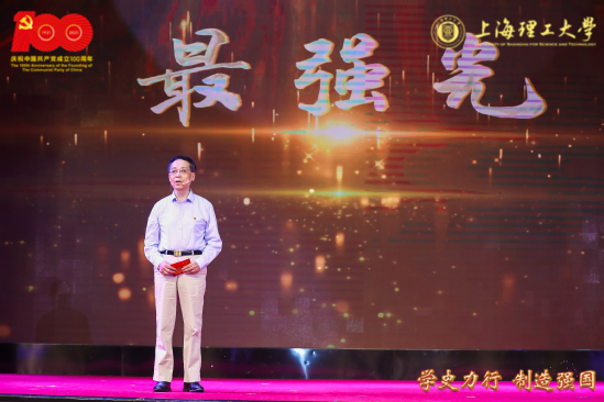 上海市教卫工作党委第三季“伟大工程”系列示范党课暨上理工“学史力行 制造强国”示范党课举行,图为庄松林院士讲述《真理之光》