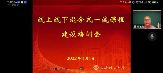 为了深化课堂教学改革,推进线上线下混合式一流课程建设,做好国家级、市级线上线下混合式一流课程申报工作,11月1日,学校召开线上线下混合式一流课程建设培训会,特邀复旦大学教师教学发展中心副主任蒋玉龙教授做“基于PPT的混合式教学”专题培训。我校各级线上线下混合式课程建设项目负责人、团队成员以及有志于开展混合式教学的老师,学院、教务处教学管理人员100余人参加培训会。培训会由教务处副处长章国庆主持。 蒋玉龙首先简要介绍了教育部推进线上线下混合式教学的背景以及一流课程建设的相关文件精神,然后结合自身开展混合式教学的实际经验重点讲解了线上线下混合式教学的核心理念、建设要点,并对如何进行教学设计以及实施混合式教学提出建议,最后还以本次市级一流课程申报文本作为案例进行点评和辅导。与会教师表示对线上线下混合式一流课程建设和申报有了更为深刻的认识,受益匪浅。 章国庆表示,线上线下混合式教学是课堂教学的一大改革,希望与会教师通过培训加深认识、提升能力,积极开展线上线下混合式教学和一流课程建设,提高线上线下混合式一流课程申报质量,力争在国家级、市级一流课程申报建设中取得佳绩。