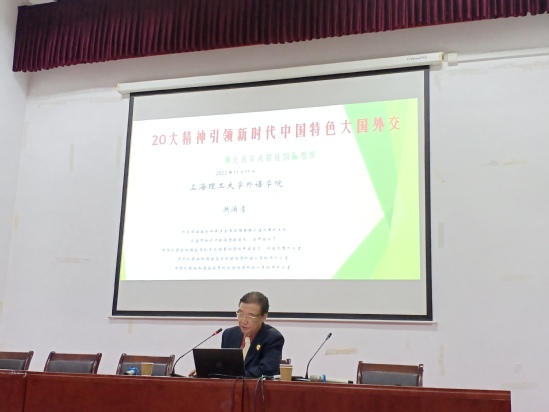 11月11日下午,我校杰出校友、外交部南南合作促进会上海办事处主任洪涌清应邀来外语学院为师生作党的二十大精神辅导专题讲座。外语学院党委书记曲德强、院长刘芹出席,近百名师生参加讲座,学院党委副书记金小东主持讲座。 洪涌清以其丰富的工作经历深入浅出地讲解了外交礼宾礼仪,介绍了国际组织机构以及党的二十大精神指引下的新时代外交等内容,分享了许多生动有趣的实例。整场讲座层次分明,案例鲜活,信息量丰富,具有很强的针对性和应用性,对师生了解中国特色大国外交、外事知识、处理外事活动具有很好的参考价值和指导作用。洪涌清幽默风趣的讲授风格深受师生欢迎,现场气氛活跃热烈,大家纷纷表示收获颇丰。 洪涌清是外语学院88级研究生,曾任中国驻匈牙利大使馆一等秘书外交官、驻芬兰大使馆一等秘书外交官和中国驻多伦多总领事馆参赞外交官、上海市知识产权局副局长等职,现任中国外交部南南合作促进会上海办事处主任。