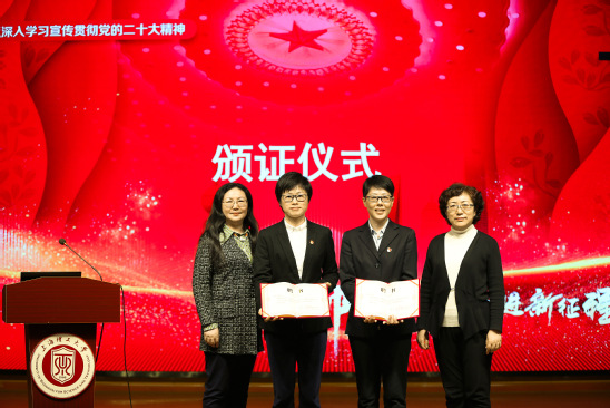 11月15日下午,巾帼心向党·奋进新征程——上海市三八红旗手讲师团年度宣讲暨2022年上海市妇联系统“传旗”修身行项目在上海理工大学教工之家举行。上海理工大学妇工委主任、副校长蔡永莲,上海市三八红旗手联谊会会长李艳玲,上海市教育系统妇工委副主任张芳,党的二十大代表、上海市三八红旗手、上海第一食品南京东路旗舰店专柜柜长郁非,上海市三八红旗手、中国科学院微小卫星创新研究院导航卫星总体研究所所长沈苑参加活动,上海理工大学基础学院全体新生以线上、线下相结合的形式聆听了宣讲活动。 会议伊始,蔡永莲对到场的来宾表示热烈的欢迎,感谢主办方在上海理工大学举办这场意义非凡的讲座。她表示,党的二十大日前胜利召开,这是在全党全国各族人民迈上全面建设社会主义现代化国家新征程、向第二个百年奋斗目标进军的关键时刻召开的一次十分重要的大会。党的二十大报告鼓舞人心,催人奋进;巾帼凝聚力量,三八红旗手们奋进新征程的事迹令人心潮澎湃。蔡永莲寄语同学们要学习巾帼楷模们勤奋刻苦、科技报国、坚持不懈、精益求精的精神,在奋进新征程中展现“聪慧、时尚、进取”的时代风貌,也希望通过此次宣讲,能更加深刻地把思想和行动统一到党的二十大精神上来,为全面建设社会主义现代化国家、全面推进中华民族伟大复兴贡献巾帼力量。 李艳玲、张芳为郁非、沈苑颁发了2022年度上海市三八红旗手讲师团特聘讲师证书。随后,郁非为师生们作《初心伴我新征程》的报告,讲述了她从一名普通售货员默默在一线服务近三十年,成为二十大代表的励志成长历程。沈苑作《北斗群星闪耀时》的报告,分享了中国北斗卫星导弹系统建设背后到艰辛与不易,口述了新时代女科技工作者对航天事业对坚守与热爱。同时作为上海理工大学的校友,沈苑以学姐的口吻,分享了她在学校成长、成才的经历。两位巾帼楷模的成长经历充分体现出当代中国青年生逢其时、施展才干的舞台无比广阔,师生们从她们的故事中感受到了梦想与荣光,激励年轻学子们不断奋进。 本次宣讲活动的嘉宾,既有在一线服务近三十年的劳模,又有勇攀科研高峰的先进典型。上理学子与巾帼楷模面对面对话,线上+线下互联互动,多维度展现巾帼楷模风采,改“单一”为“交互”,改“大众”为“分众”,使巾帼楷模的奋进精神以喜闻乐见、亲切清新,贴近实际、贴近生活、贴近学生的方式润物无声,让大学生真切感受到巾帼楷模的风采,既是三八红旗手讲师团的宣讲活动,又是“全员、全过程、全方位”的三全育人思政课。