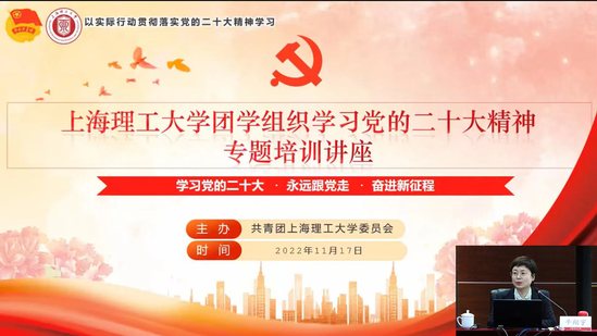 为深入学习宣传贯彻党的二十大精神,更好团结引领广大青年紧跟党奋进新征程、夺取新胜利,根据团中央《关于全团认真学习宣传贯彻党的二十大精神的通知》要求,《上海学校共青团(学联学生会组织)学习宣传贯彻党的二十大精神工作安排》,结合学校党委学习宣传贯彻党的二十大精神的工作部署,11月17日上午,校团委开展了“学习二十大、永远跟党走、奋进新征程”主题培训,马院副教授牛翔宇做“做有理想·敢担当·能吃苦·肯奋斗的新时代好青年——认真学习党的二十大会议精神”专题培训讲座,分享了个人学习心得,由此拉开了学校全团青年学习领会党的二十大精神专题学习的序幕。本次学习以线上线下相结合方式开展,共有各学院团委书记、学生党员、团学骨干、团支部书记、“青马工程”培训班学员、学生会和社团负责人代表等320余人参与学习。 学习紧紧围绕党的二十大报告原文内容,深入浅出地分析了二十大精神内涵实质和战略安排。聚焦中国式现代化、全过程人民民主、全人类共同价值等重要概念,对青年群体如何理解“五个牢牢把握”,如何融入新时代新征程中党和国家事业的重大战略部署等,从教育、科技、人才等相关理论中展开全面阐述,让团员青年们深刻领悟党的二十大精神。 党的二十大是在全党全国各族人民迈上全面建设社会主义现代化国家新征程、向第二个百年奋斗目标进军的关键时刻召开的一次十分重要的大会。认真组织学校各级团学组织和团员青年们学习宣传贯彻党的二十大精神,是校团委当前和今后一个时期的首要政治任务。后续,校团委将充分把握全团学习宣传贯彻工作的目标和要求,深刻领会党对青年一代的殷切期望和对青年工作的关注,全面推动党的二十大精神在全校团员青年中入耳入脑入心,引领广大团员青年在全面建设社会主义现代化国家、全面推进中华民族伟大复兴的征程中不懈奋斗。