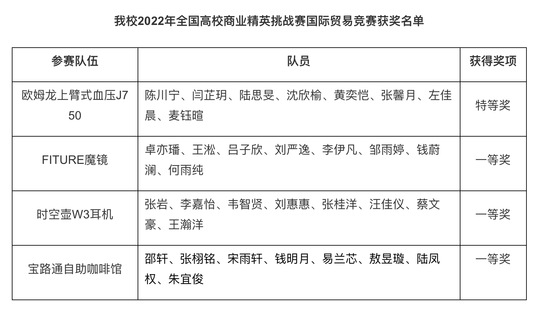 近日,中国国际贸易促进委员会商业行业委员会、中国国际商会商业行业商会和中国商业经济学会共同主办的第十二届全国高校商业精英挑战赛国际贸易竞赛(国际贸易业务模拟赛道)总决赛在线上举行,我校4支参赛队再创佳绩,获特等奖1项和一等奖3项。同时,我校获得“最佳院校组织奖”,唐俏、罗芳、杨乐等指导教师获得“优秀指导教师”称号。 此次竞赛共有来自安徽、北京、福建、甘肃、湖南、江苏、江西、吉林、山东、山西、陕西、上海、四川、新疆、云南、浙江、广东、广西、重庆等21个省、自治区和直辖市的128所高等院校246支参赛队约2500名参赛选手和辅导教师入围全国总决赛。竞赛包括商业计划书(中文)、新产品发布会(英语或小语种)、展位海报设计与商品陈列、商贸配对贸易谈判(英语或小语种)四个环节。 管理学院国际经济与贸易系指导教师团队与参赛学生共同努力,充分利用线上线下相结合的模式认真备赛,对在上海市赛中取得良好成绩的参赛作品进行重新打磨,深入挖掘“云端产品发布+线上商务谈判”的新亮点。在发布会线下录制环节,指导教师联系拍摄场地和摄影人员,一遍一遍地指导学生完成产品发布会的录制工作。在商务谈判环节,指导教师和参赛学生提前多次模拟演练,学生们进一步领悟了贸易谈判的思维方式和技巧。我校参赛团队在云上竞赛中再创佳绩,表现出了扎实的国际贸易专业素养、流利的英语表达能力、得体的商务礼仪以及优良的团队合作精神。 全国高校商业精英挑战赛国际贸易竞赛自2011年创办以来,已连续举办12年,目前已成为我国国际贸易教育领域,创新实践、校企合作、国际交流的跨专业综合实践平台。2021年起,该赛事已被纳入中国高等教育学会发布的学科竞赛排行榜目录(赛事编号46),是目前学科竞赛排行榜目录中唯一的国际贸易专业赛事活动。自2014年第一次参加该赛事以来,管理学院国际经济与贸易系为大赛持续输送优秀参赛团队。在认真践行管理学院AACSB认证理念的同时,通过以赛促学、以赛促教,提高学生的综合素质和创新能力。另外,这也加强了我校与全国其他高校和企业的交流与合作,开阔了参赛师生的视野,积累了宝贵的赛事经验。